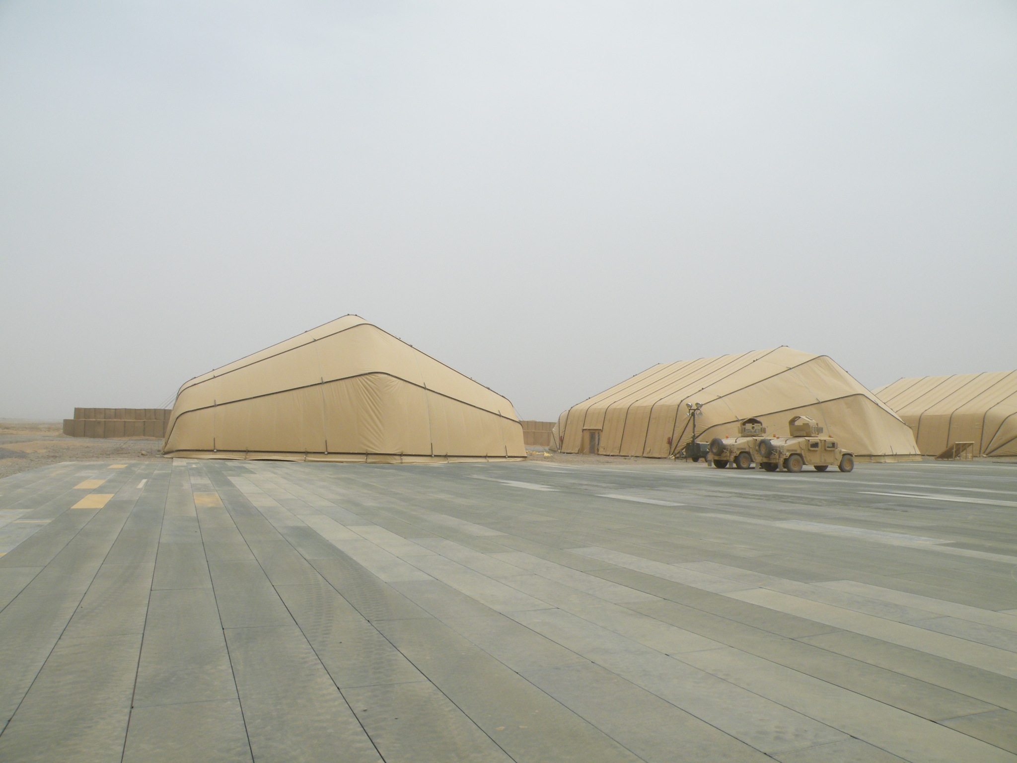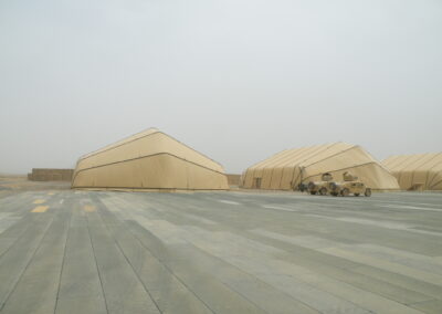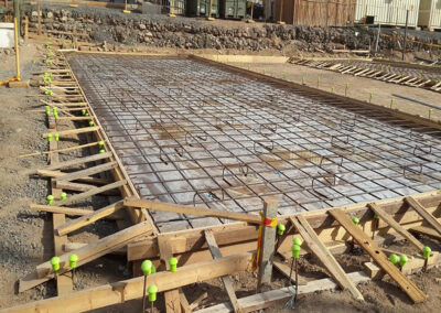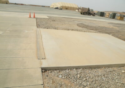 Work included demolition, grade and level area to accommodate for new work, correct storm water drainage, install (2) 8″ reinforced concrete pads, install new water and sanitary utility infrastructure, provide 300 linear foot of new Electrical service lines and associated panels. Work also included the installation of 400 linear foot of Type I 8′ security fencing and vehicle gates with 10′ OC posts embed 40″ deep of 3000 PSI concrete.