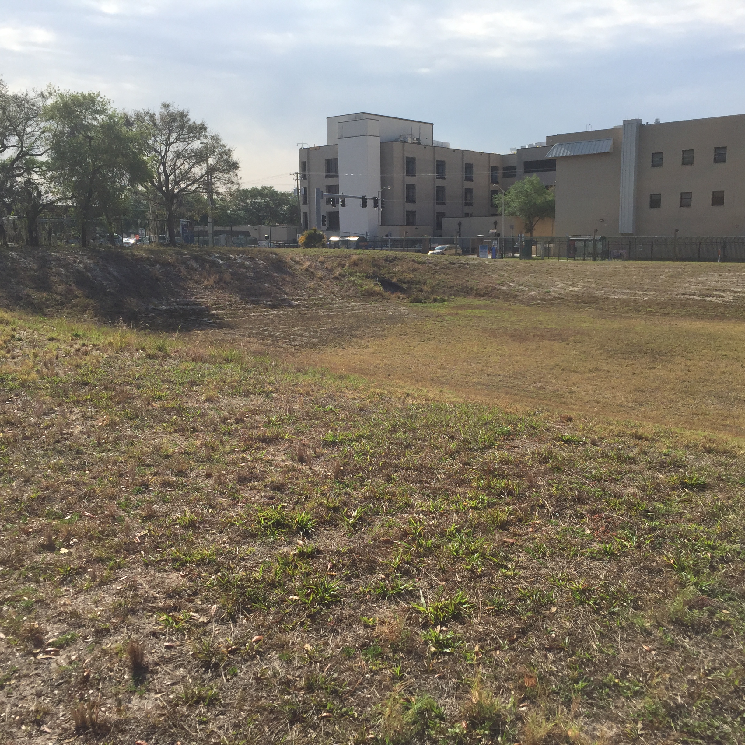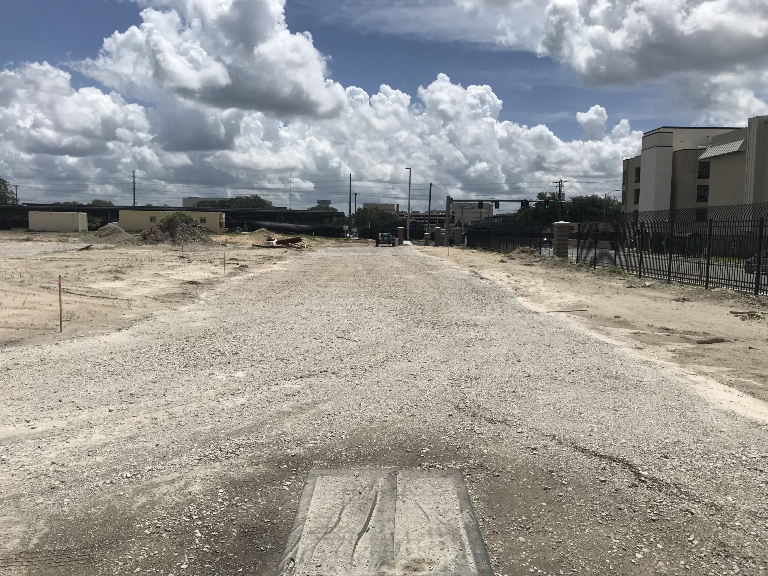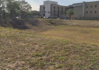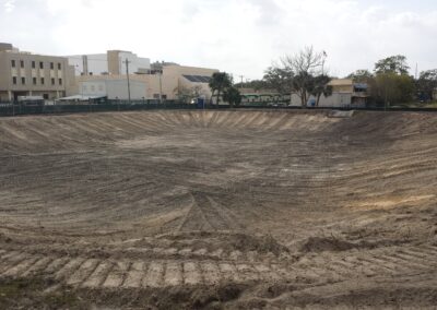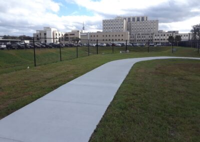 Project consisted of site clearing, Earthwork for new retention pond, grading for asphalt driving lanes and grass parking areas, concrete sidewalk paving and ramps, security fencing, electrical, storm drainage system and associated utilities.