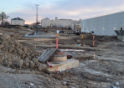 Scope of work includes, but is not limited to abatement and removal and disposal of asbestos or other hazardous materials; demolition and removal of existing (7) Buildings # 4, 4T, 5, 7, 8, 48 and 49 and site improvements and features above and below ground; abandonment, removal and relocation of existing underground utilities; installation of new underground utilities, infrastructure, roadways, parking and pavement; earth and site work, including excavation, fill and disposal of surplus excavated earth or other material for construction of new campus utilities, parking, site improvements and other associated work such as lighting, pavement markings, signage, asbestos abatement for utilities or infrastructure tie-in connections, shoring and protection of existing construction.