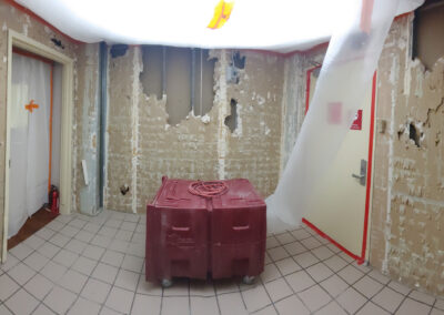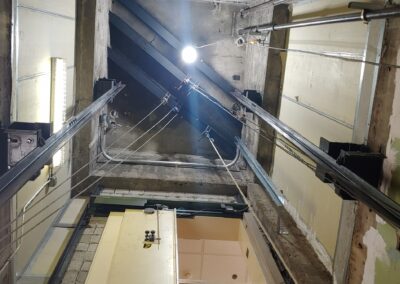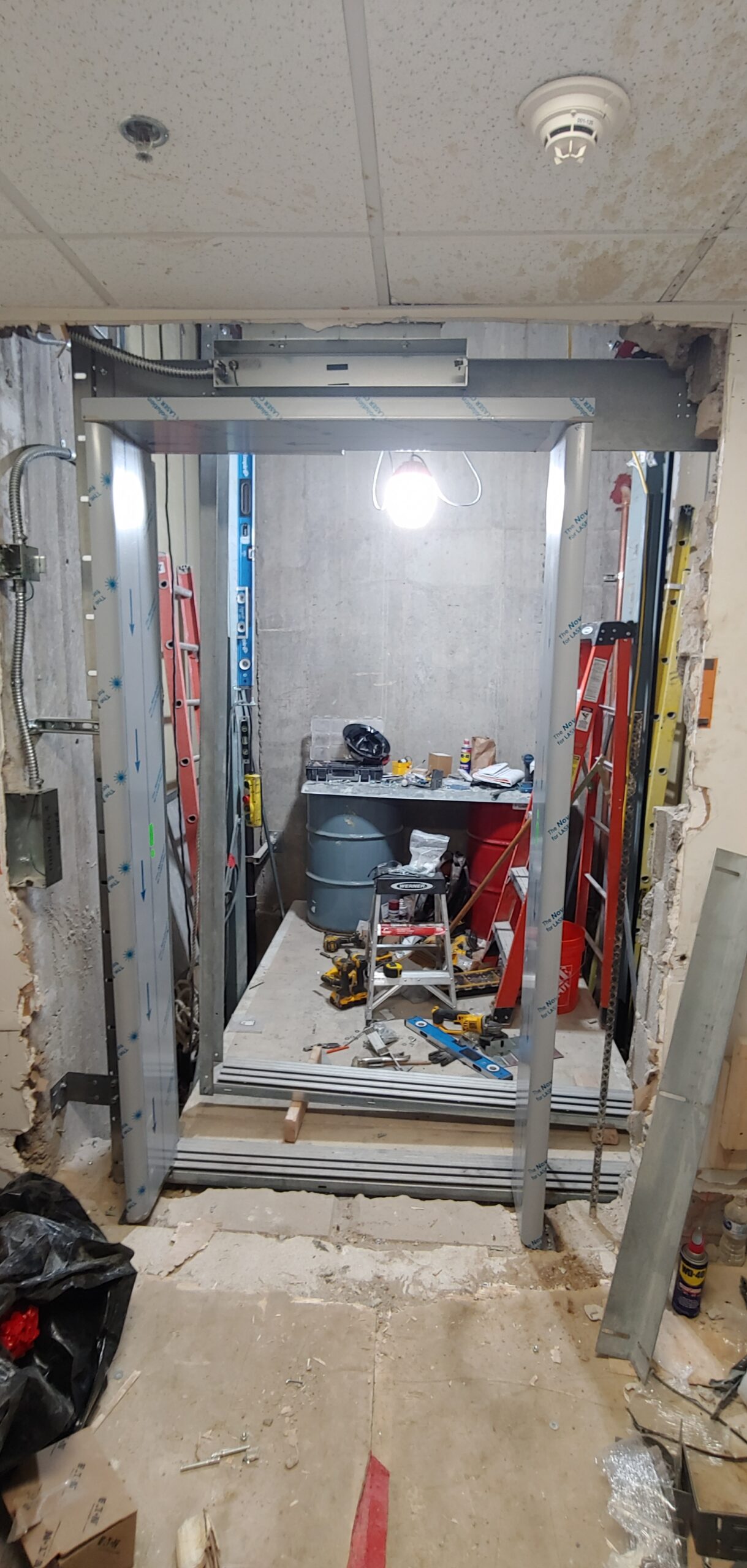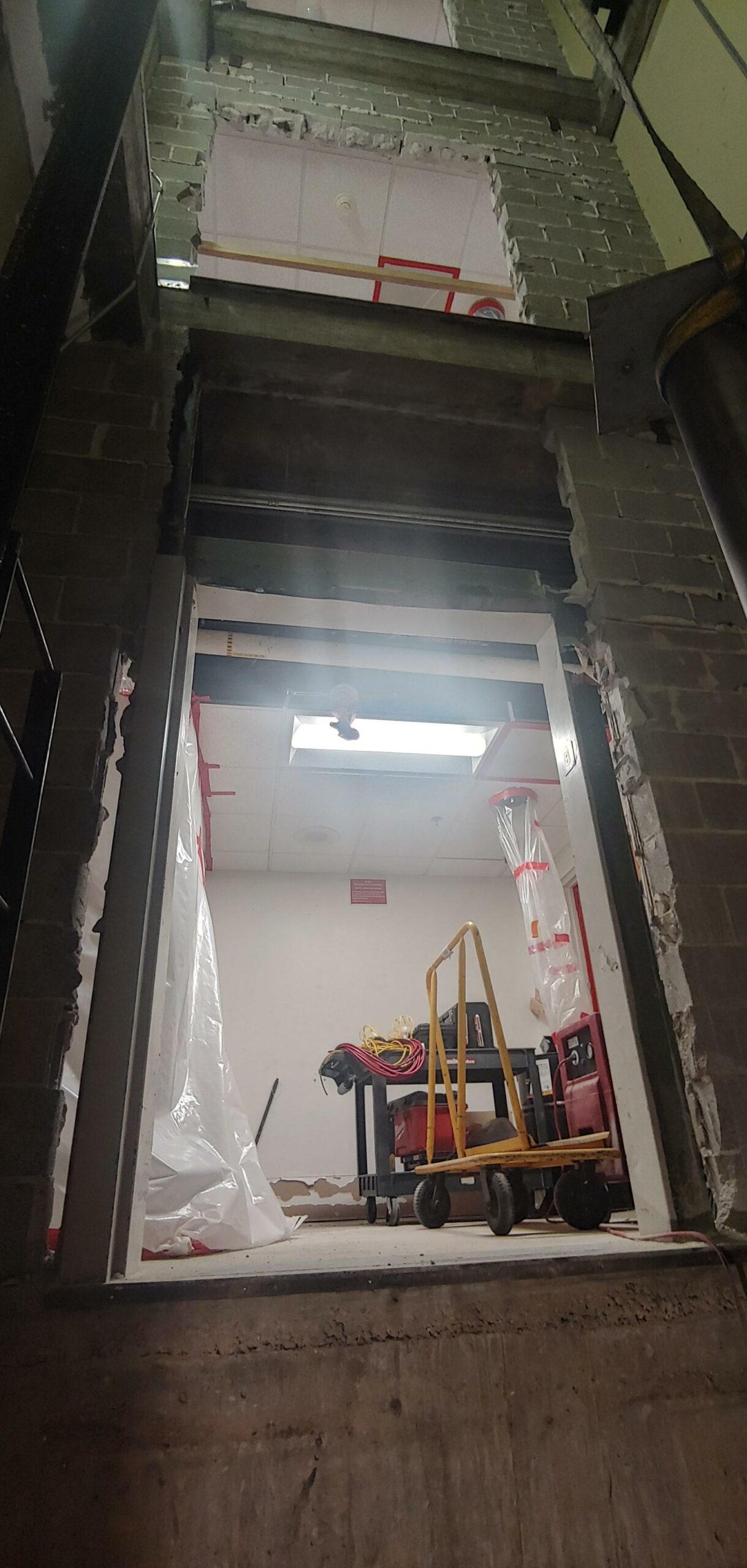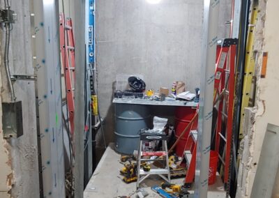 Project consisted of removal and replacement of 2 elevator cars. Work included abatement, electrical, mechanical, fireproofing, masonry, carpentry, ironwork and finishes to include painting, flooring and specialty finishes.