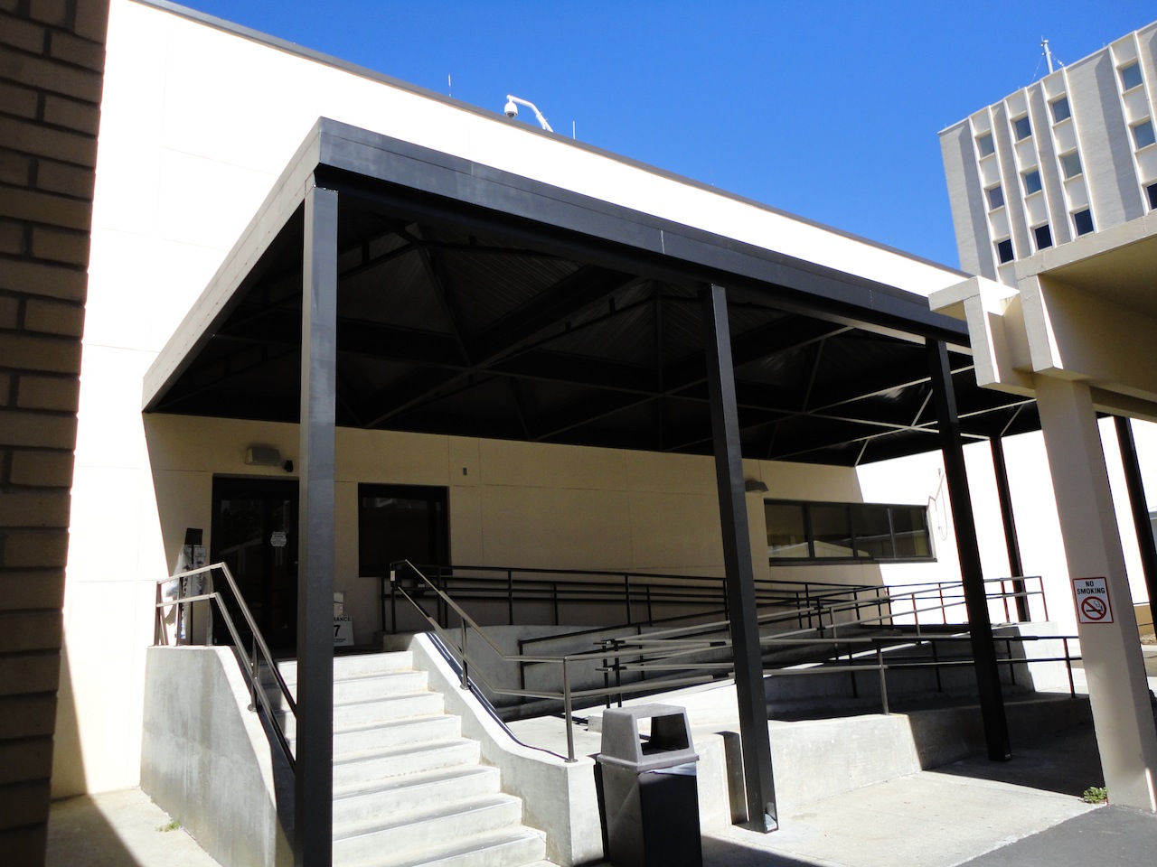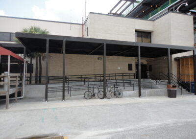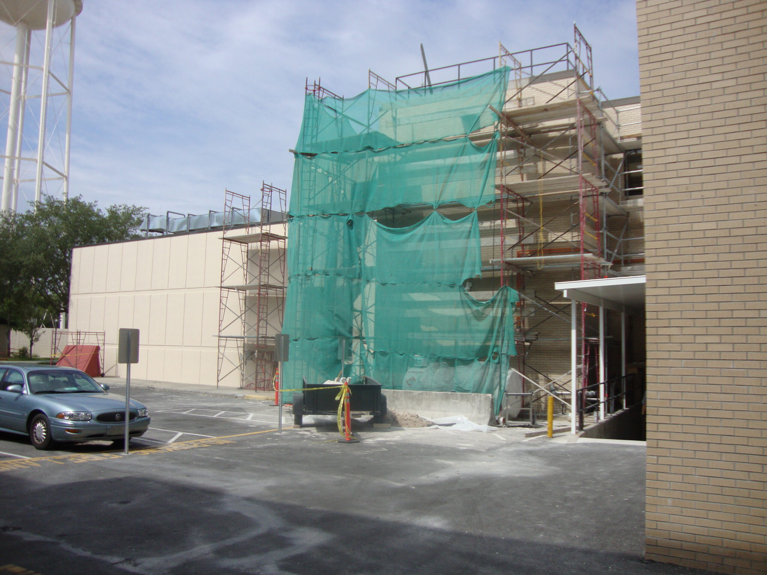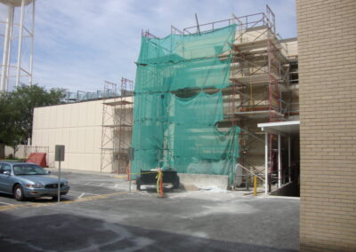Scope of work included interior and exterior renovations to include 20,000 square foot of masonry tuck pointing, replace 105 existing windows with new Dept. of Defense blast resistant fixed windows, Construct new 100 square foot masonry structure, Design and Erection of 6 new hurricane rated aluminum canopies, installation of 55 roof attachments.
